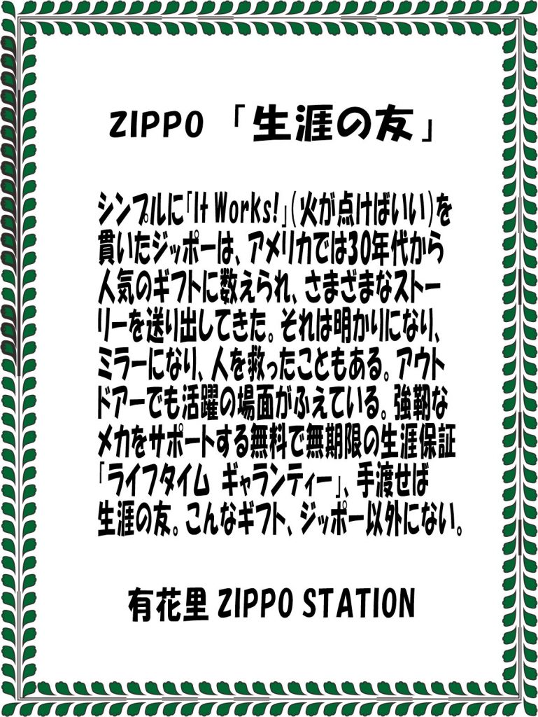 弊社、有花里 ZIPPO STATION のドメインであります(zippostation.co.jp